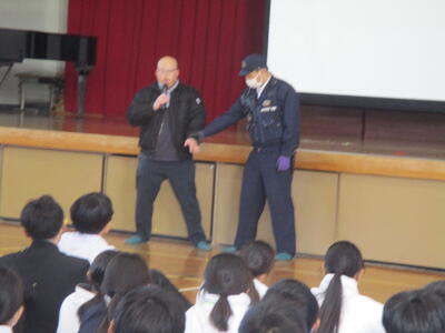 避難訓練(不審者対応) 投稿日時 : 01/27 教頭 1月27日に不審者対応の避難訓練を実施しました。不審者の情報の共有。その後のクラスの侵入を防ぐバリケード、不審者確保後の避難、集会など真剣な様子で実施出来ました。 避難後は、寄居警察の方々から、不審者に迫られた時の回避法などを御指導頂きました。 Tweet {{options.likeCount}} {{options.likeCount}} 0 コメント